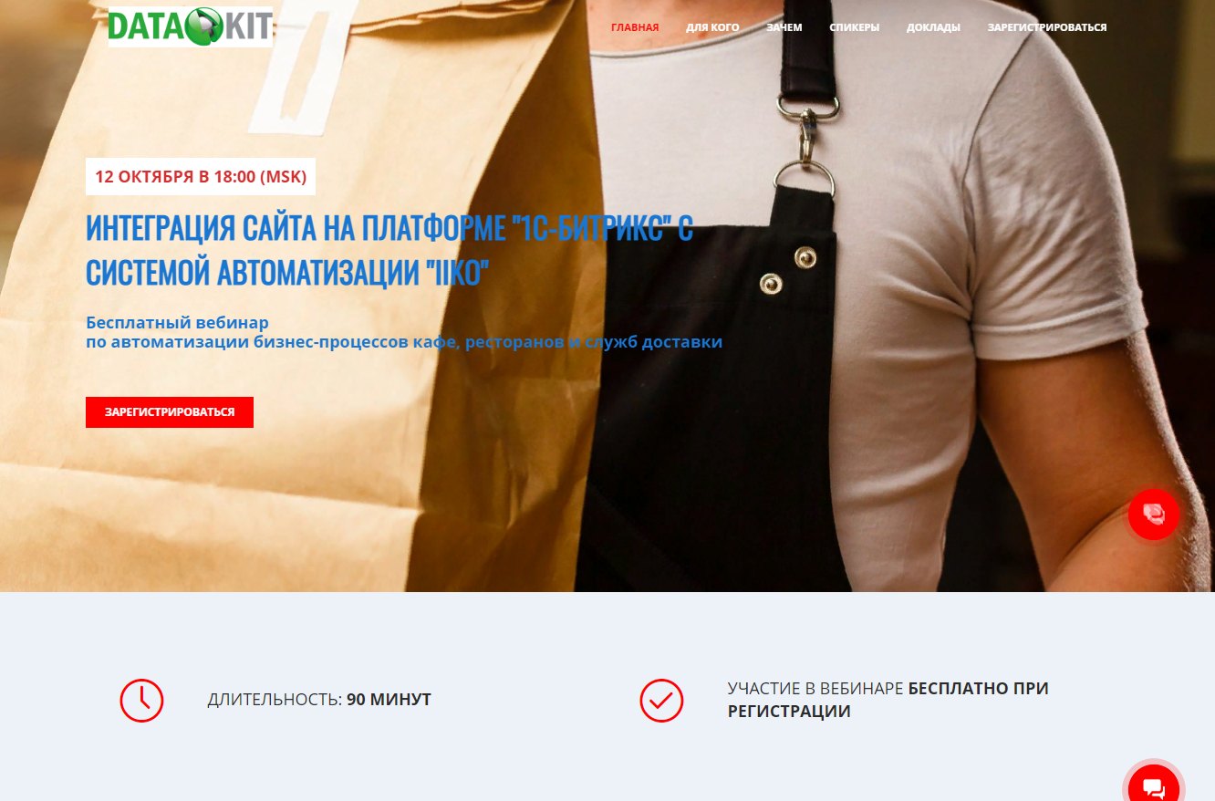 Получить 100 регистраций на вебинар по интеграции сайта на платформе 1С-Битрикс с системой автоматизации IIKO