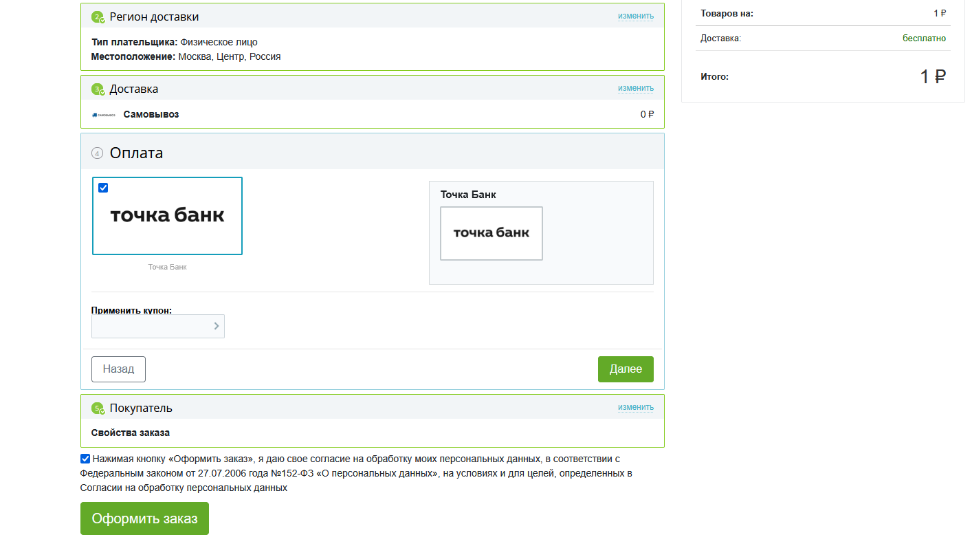 Модуль позволит принимать оплату картами Visa, MasterCard и МИР и по СБП на вашем сайте. Для заключения договора на интернет-эквайринг от Точка Банка оставьте .