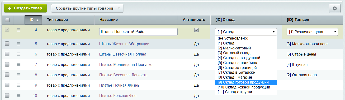 - Привязка к складу по ID (askaron.prop)
