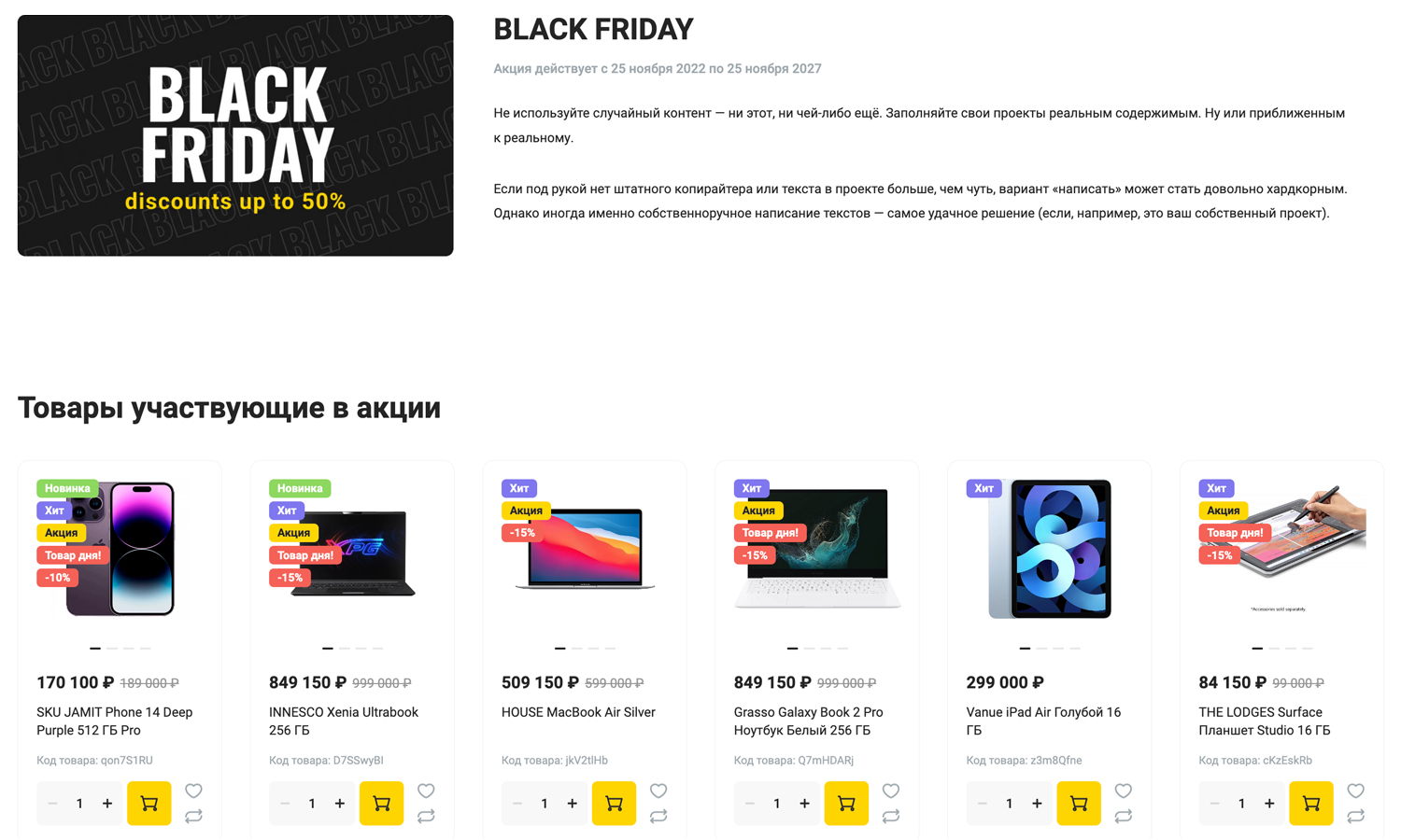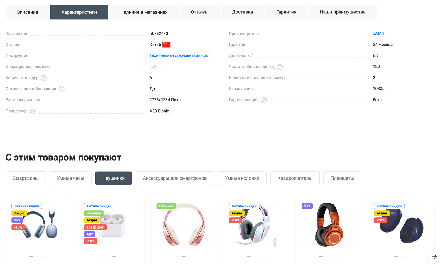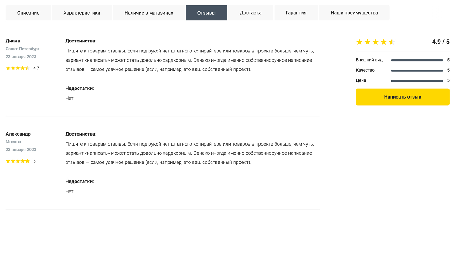 Используйте вкладку для информации о продуктах и их пользе для покупателей. Размещайте информацию, которая поможет пользователю разобраться и сориентироваться по свойствам товара.