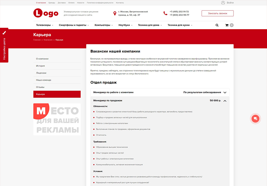 Используйте вкладку для информации о продуктах и их пользе для покупателей. Размещайте информацию, которая поможет пользователю разобраться и сориентироваться по свойствам товара.