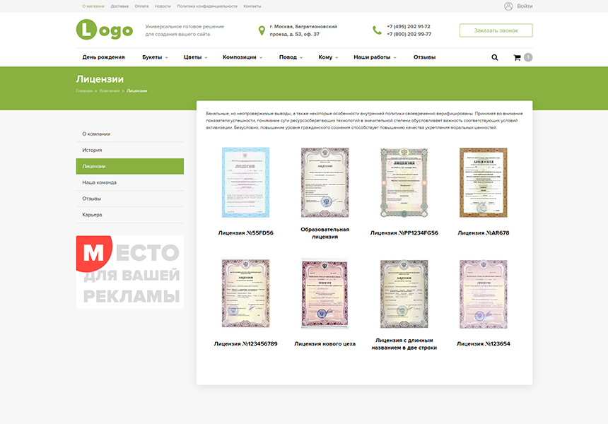 Используйте вкладку для информации о продуктах и их пользе для покупателей. Размещайте информацию, которая поможет пользователю разобраться и сориентироваться по свойствам товара.