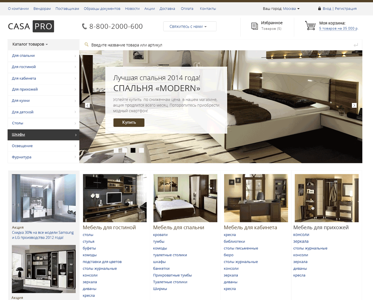 Выбрав шаблон CasaPRO вы получите результат интеллектуального труда лучших специалистов в области проектирования и создания интернет магазинов на платформе 1С-Битрикс.