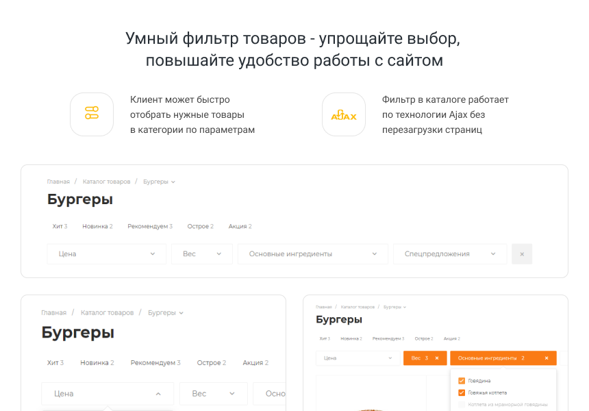 INTEC.Food - магазин доставки еды, суши, пиццы с корзиной и оплатой. Сайт для ресторанов и кафе