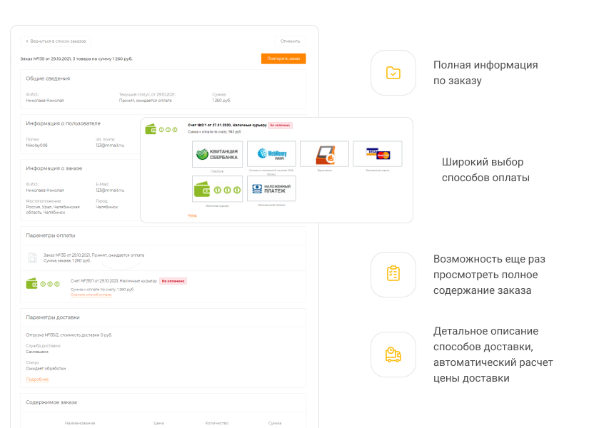 Возможность сделать заказ прямо с главной страницы