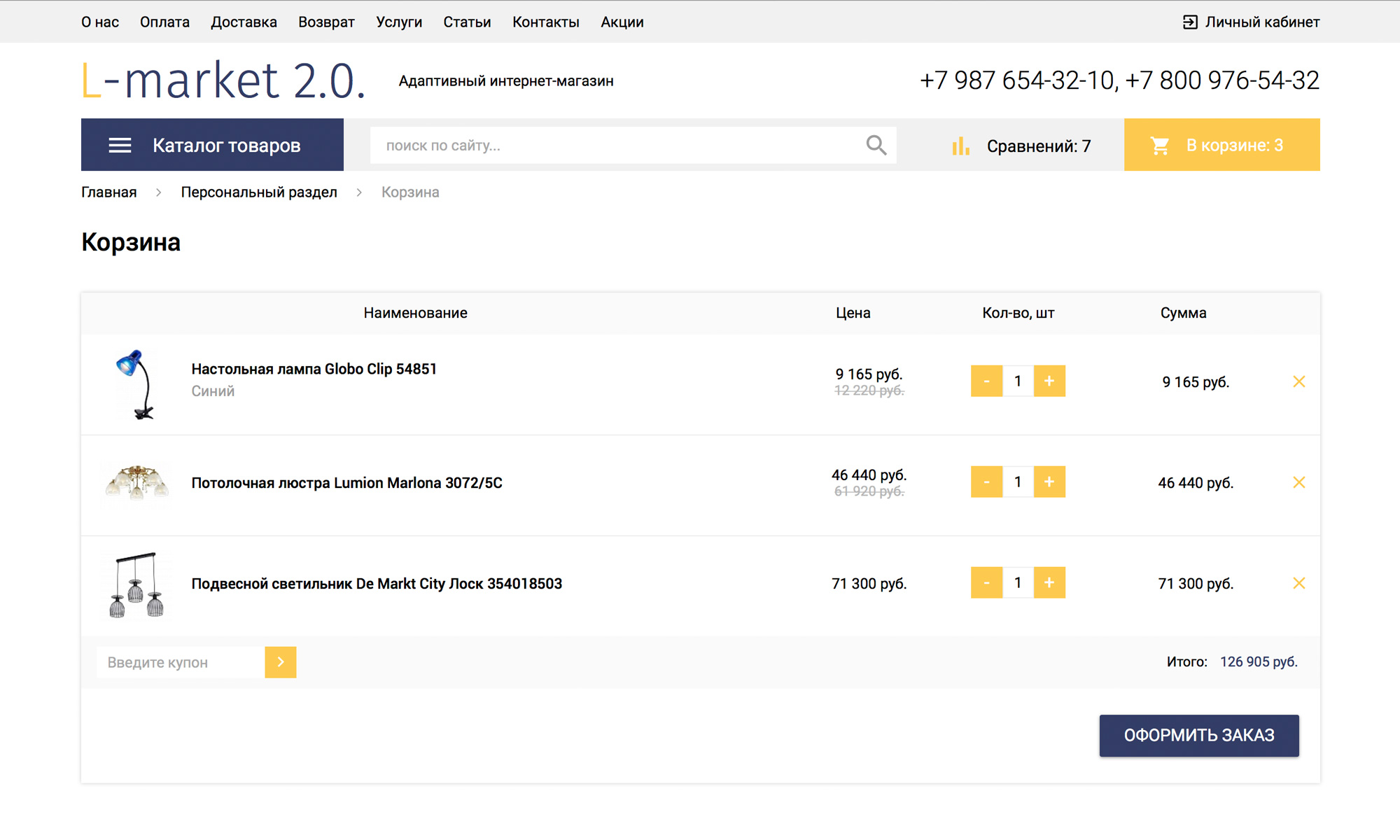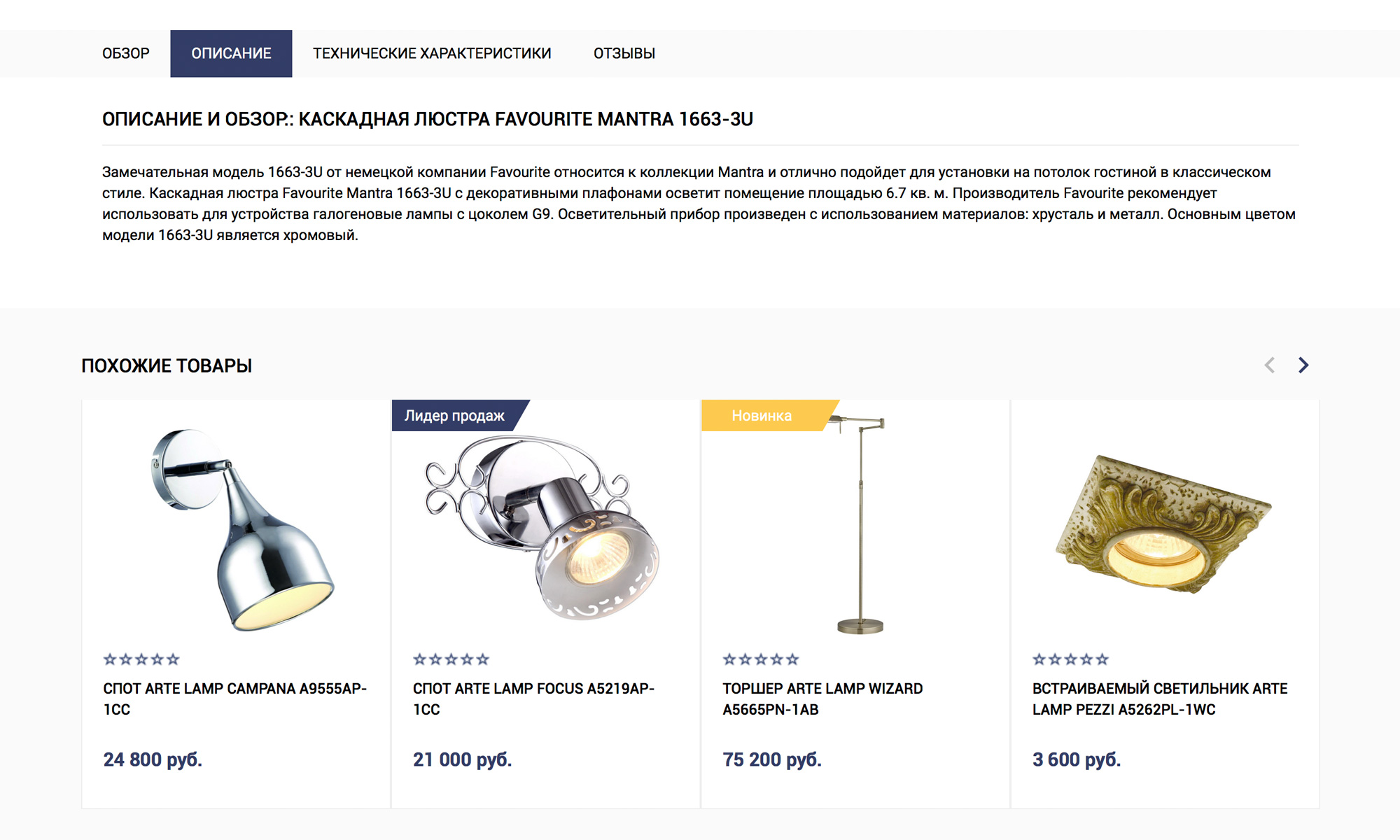 Отраслевой интернет-магазин освещения и товаров для света «Luster-market 2.0»