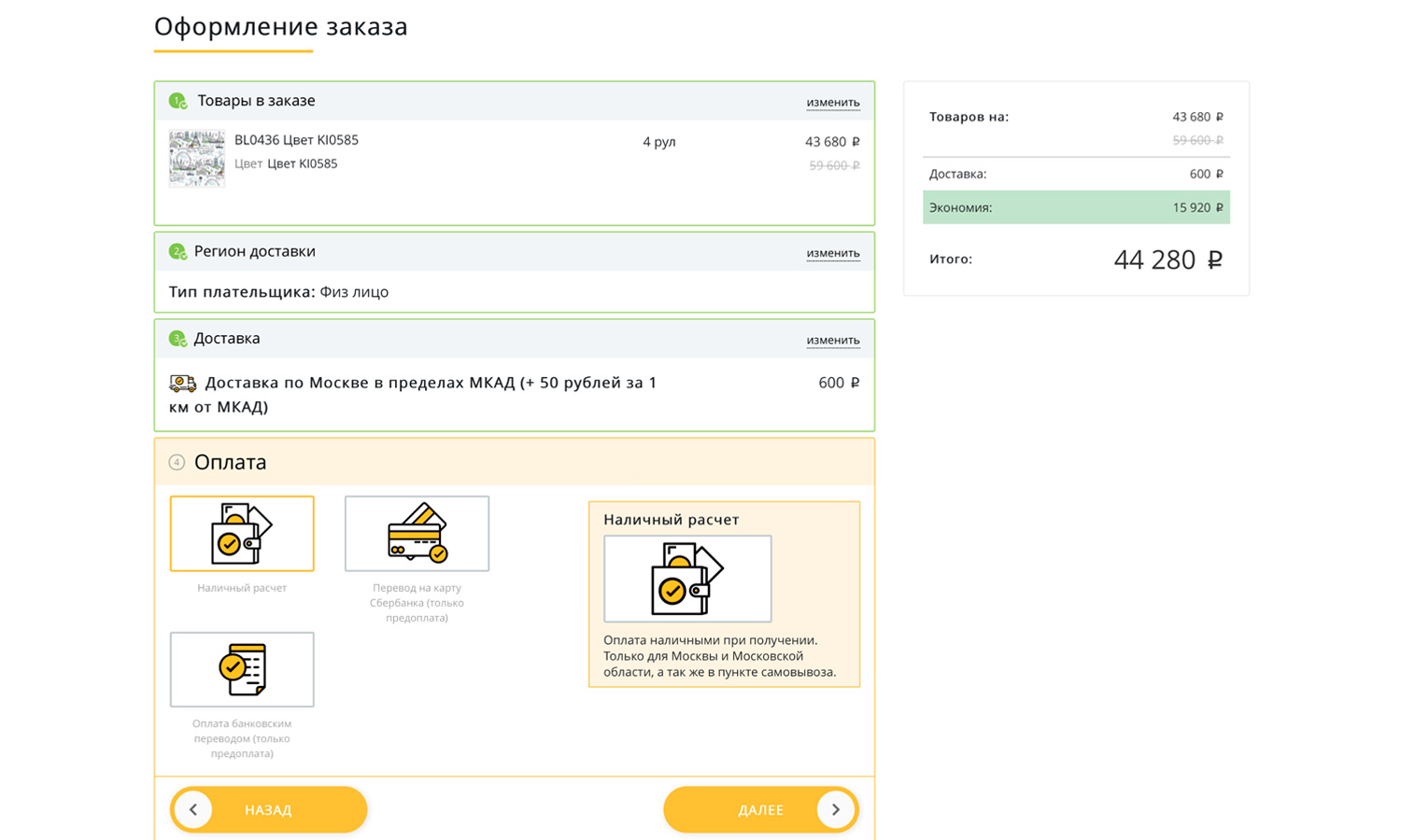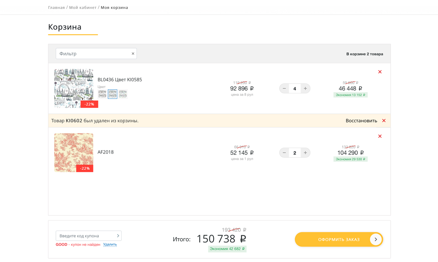 Корзина, покупка