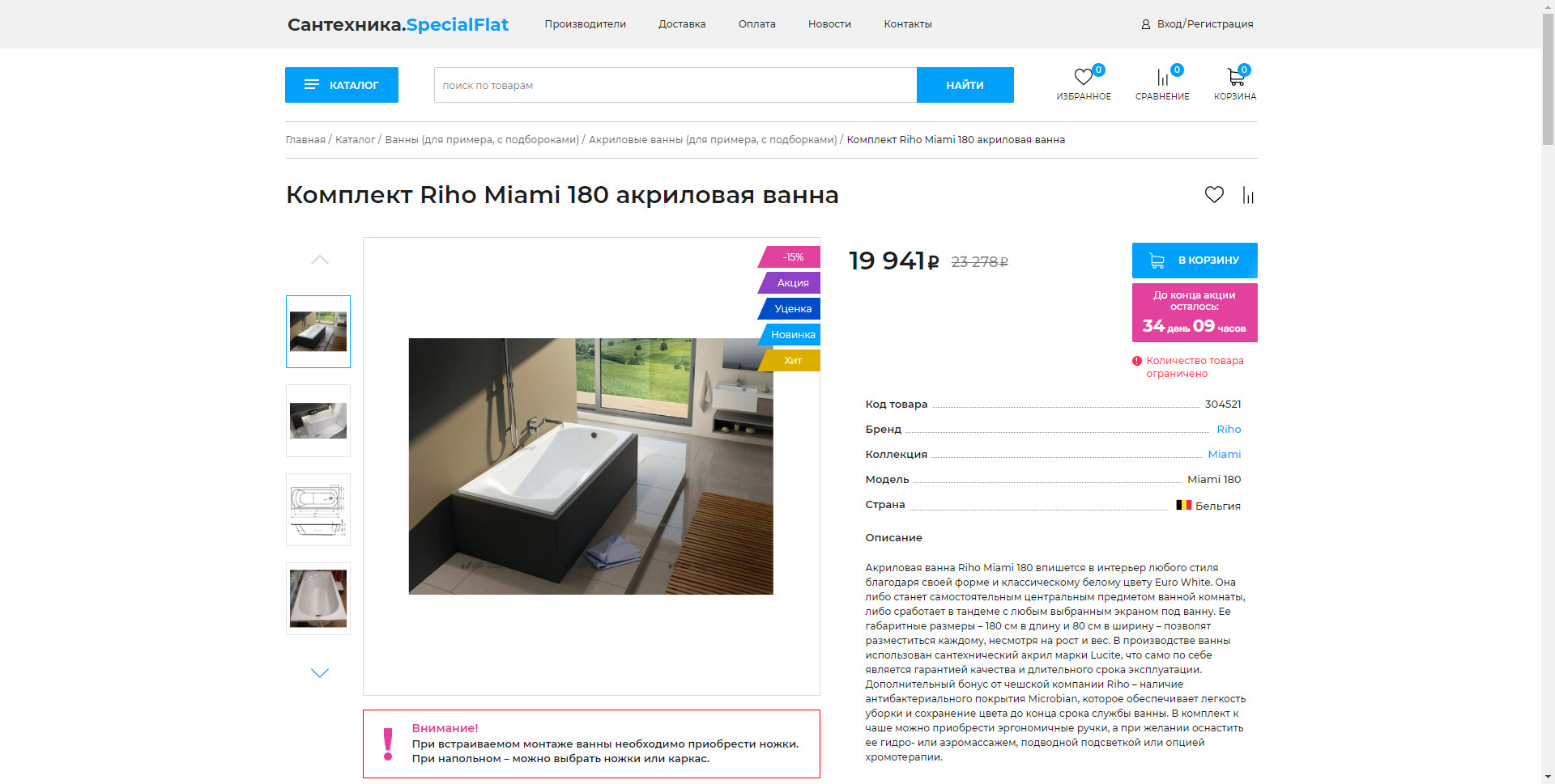 Отраслевой интернет-магазин сантехники, водоснабжения и отопления «Крайт: Сантехника.SpecialFlat»