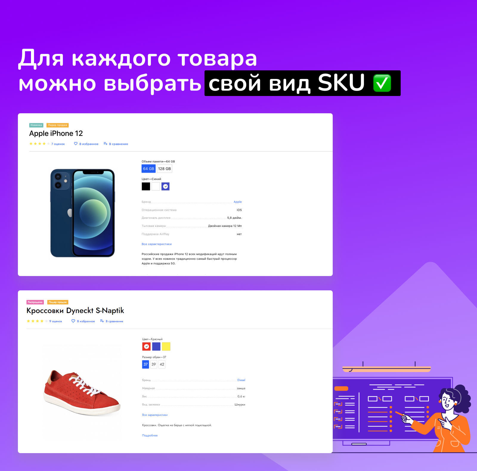 Используйте вкладку для информации о продуктах и их пользе для покупателей. Размещайте информацию, которая поможет пользователю разобраться и сориентироваться по свойствам товара.