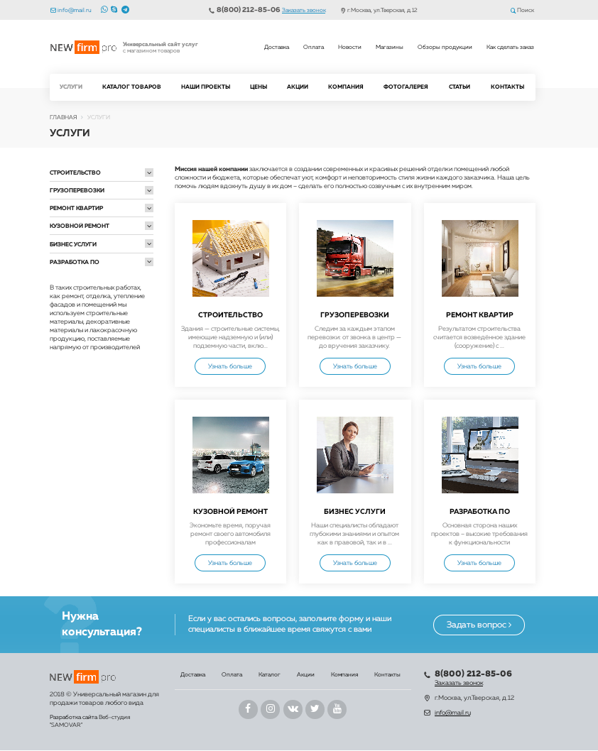 Firma.pro: компания и магазин с корзиной на Старте