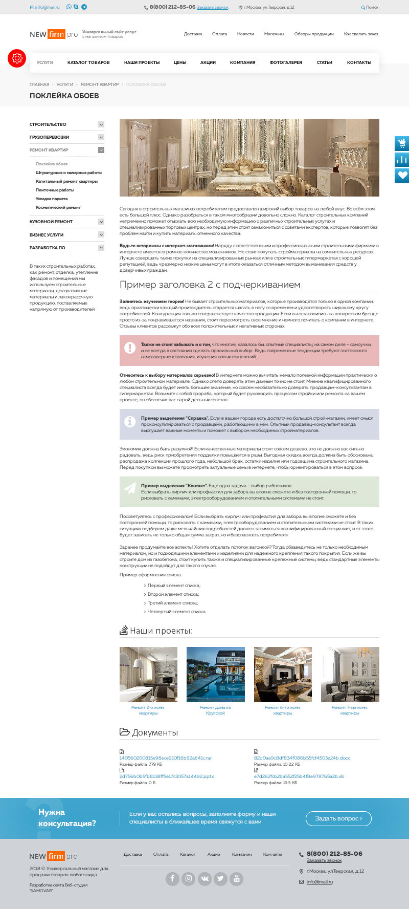 [P]- Баннера с Услугами и Проектами, акциями, информацией о доставке и популярными товарами[/P]