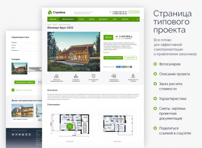 - структура сайта создана с учетом специфических потребностей строительного бизнеса: в меню сайта вынесены ключевые аспекты (реализованные проекты, типовые решения, цены и акции, услуги и т.д), на главной странице располагаются промоблоки с актуальными предложениями