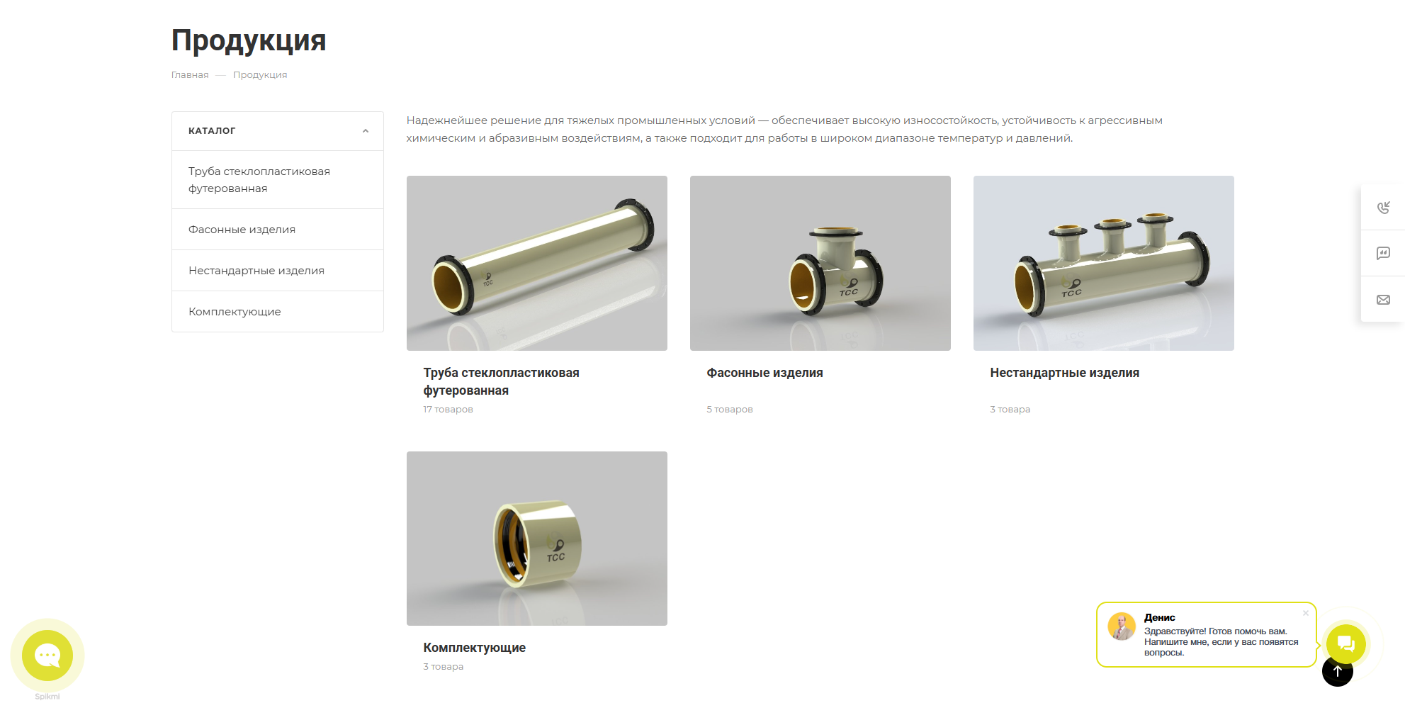 - Продукция: каталог товаров, включая стеклопластиковые трубы с различными видами футеровок, фасонные и нестандартные изделия, а также комплектующие. tpss.ru