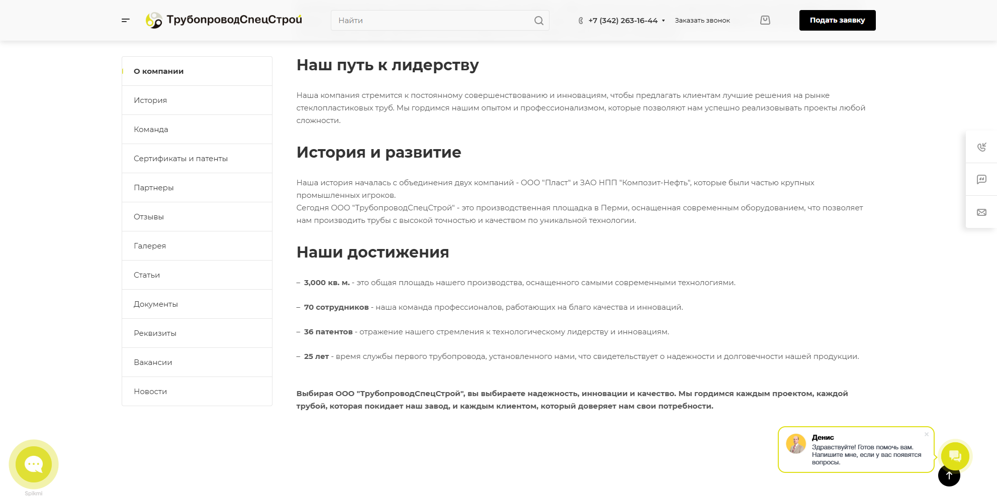 - О компании: история, команда, сертификаты и патенты, партнёры, отзывы клиентов и галерея.