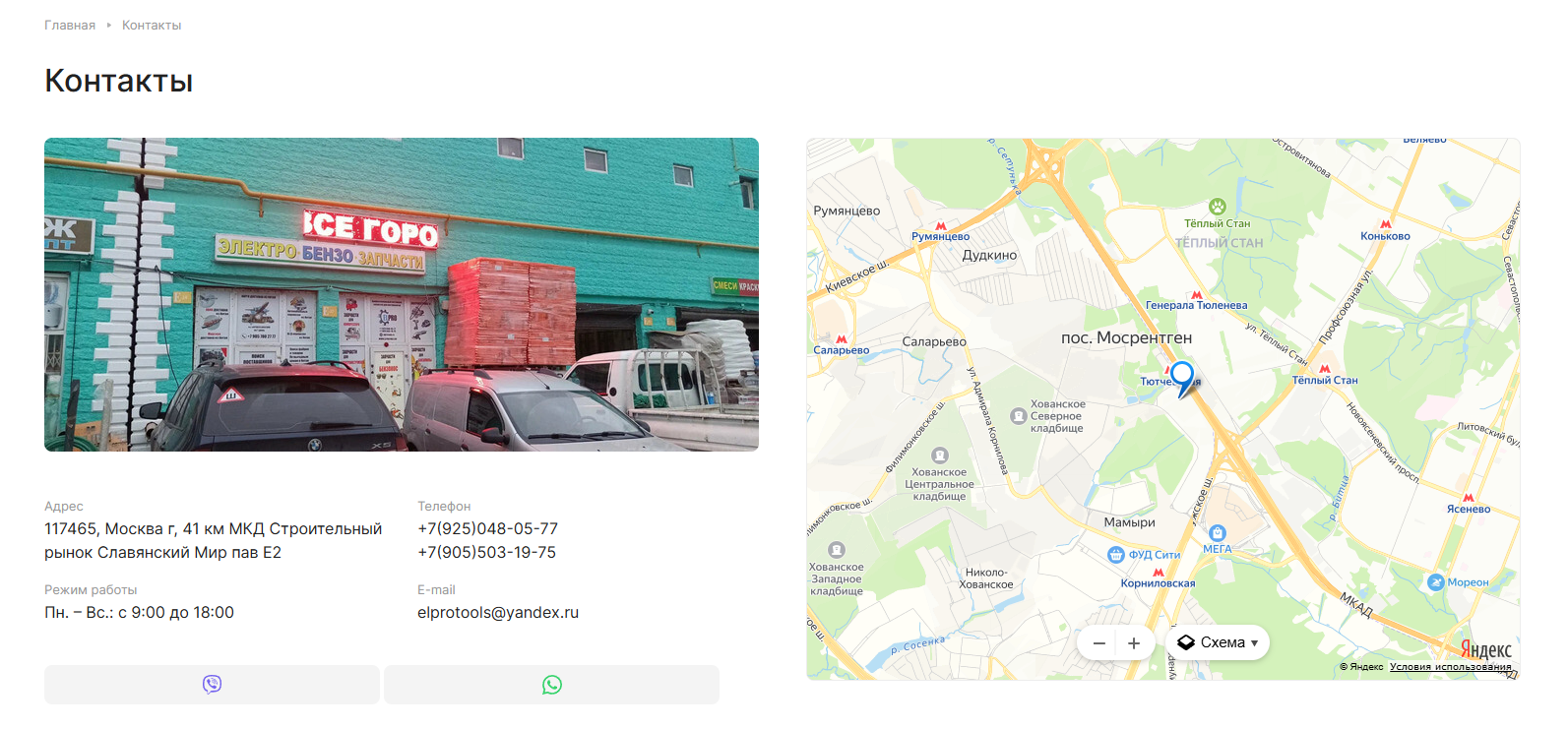 Контакты: содержит адрес офиса в Москве, контактные телефоны, email и режим работы.