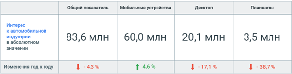 Интерес к автомобильной категории в абсолютном значении по версии Google