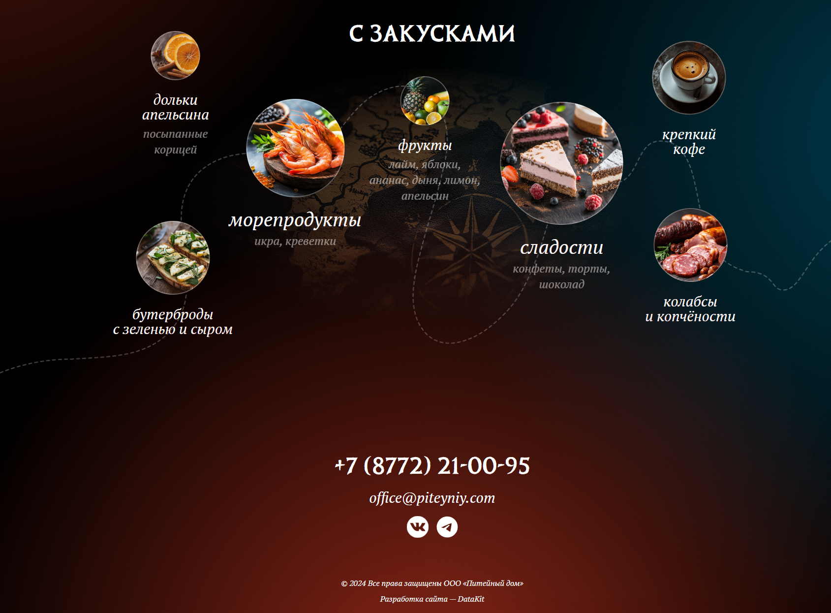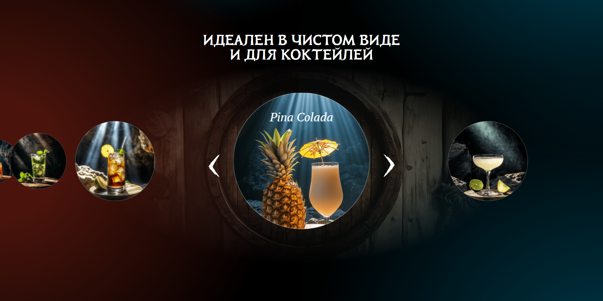 На сайте также реализованы интерактивные элементы, такие как всплывающие окна с подробными рецептами коктейлей и рекомендациями по закускам, что улучшает пользовательский опыт и вовлекает посетителей в изучение продукции.