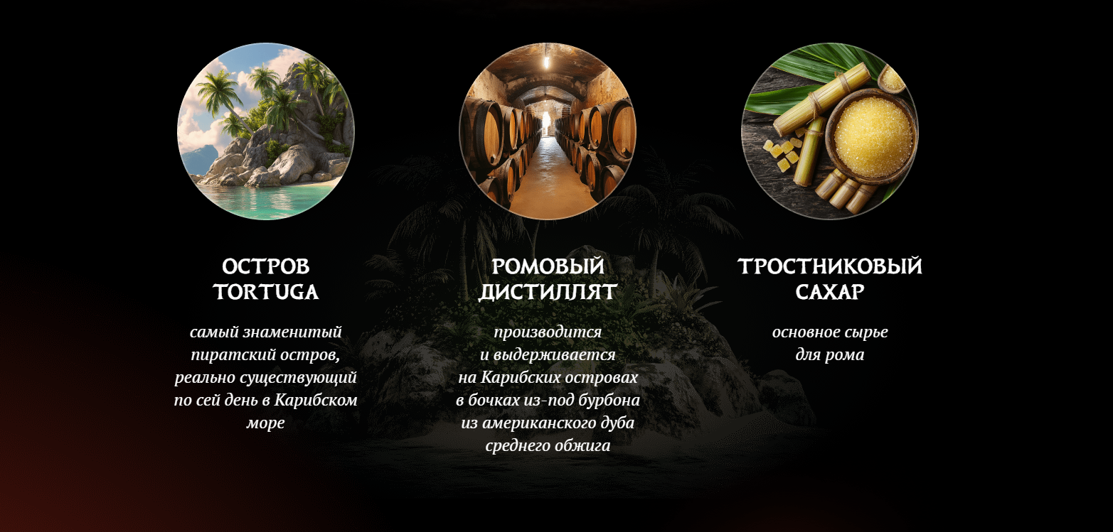 - О компании: информация об истории бренда, происхождении названия и особенностях производства рома.